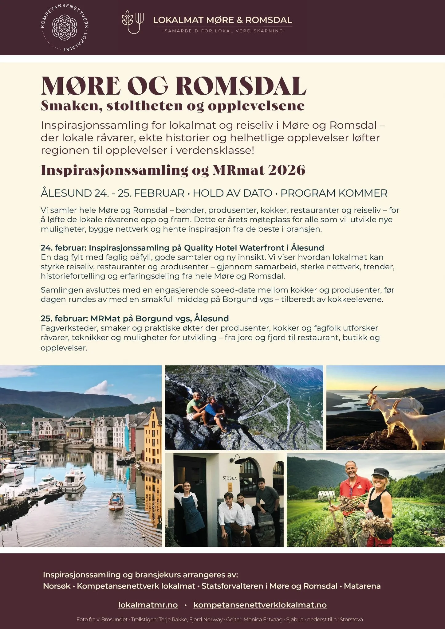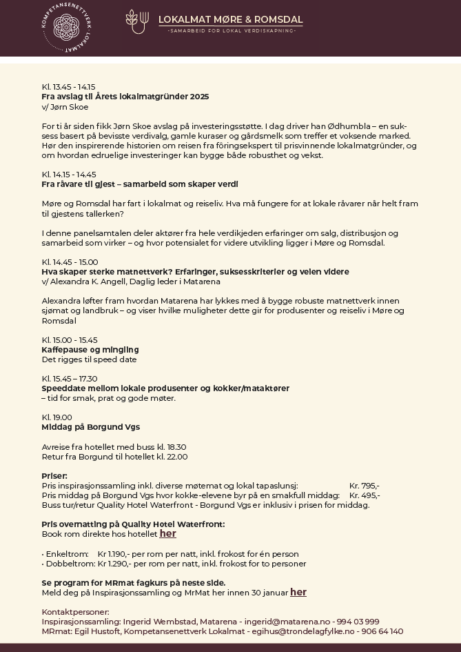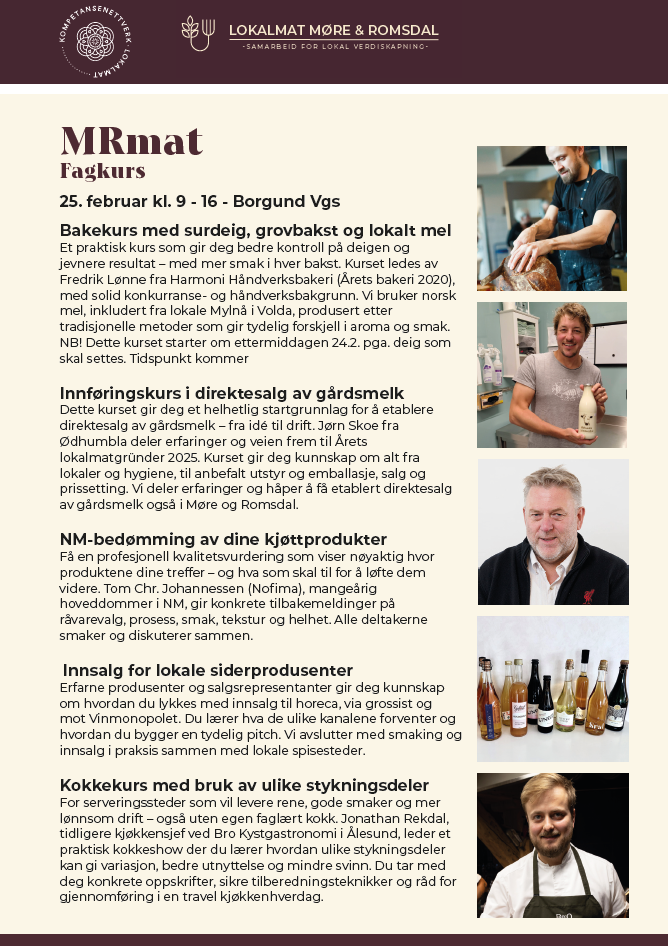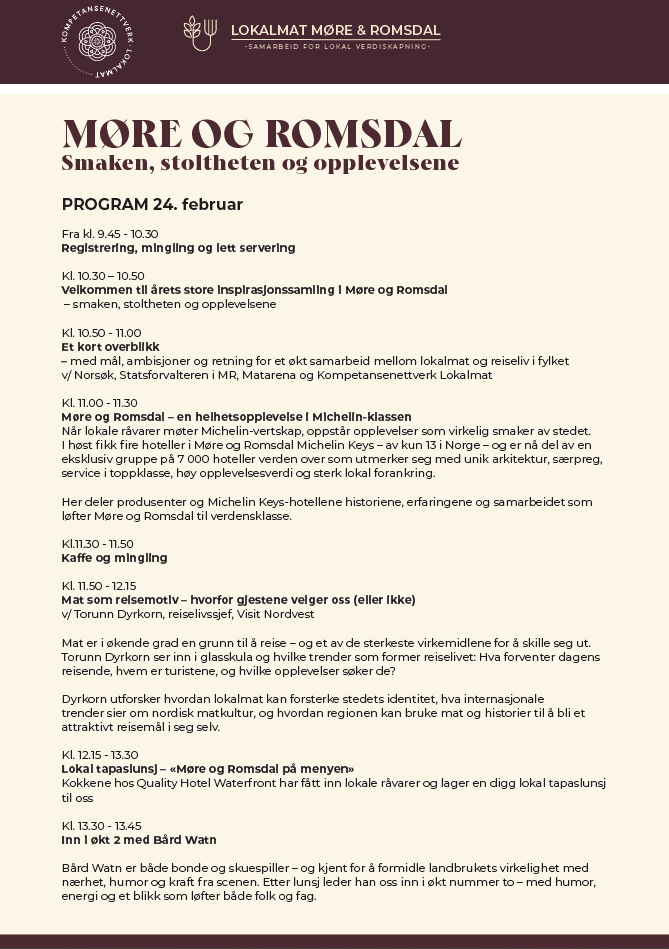 Se program under og meld deg på her så fort som mulig: Påmeldingsskjema - Lokalmat Møre og Romsdal kokk-bonde verksted 20. og 21. oktober